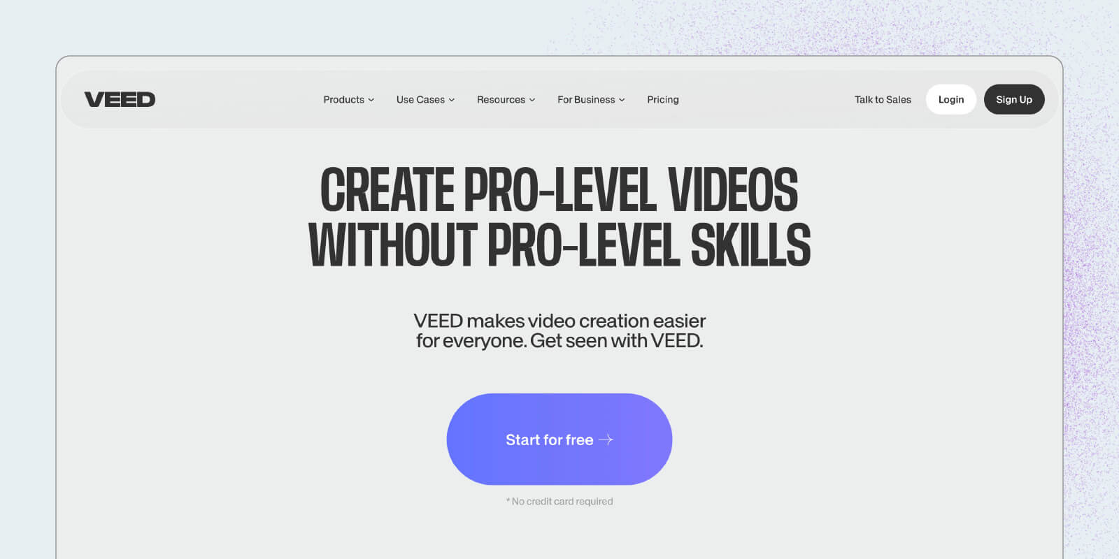 VEED is a tool suitable for both professional and personal use. It offers useful features for businesses, such as tools that improve eye contact in videos. It also includes some fun options, like meme creation or video invitations.
