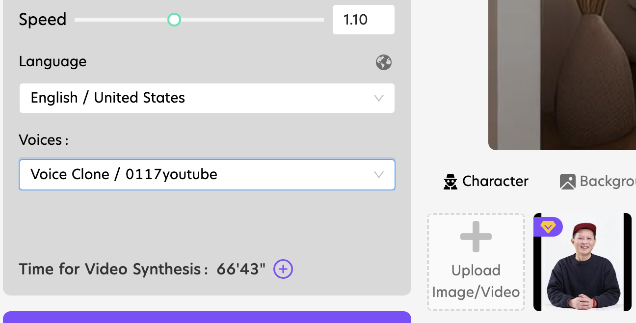 Select your AI clone. Type some text in the text box on the left. Select a proper launguage. Select “Voice Clone / XXX” from the Voices drop menu.