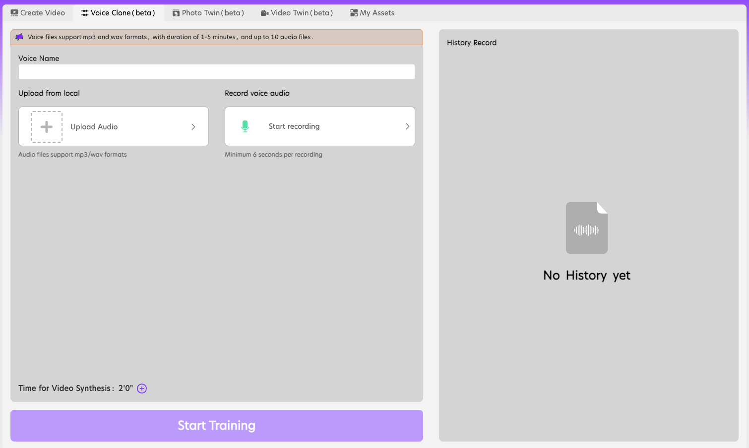Click “Voice Clone” tab, type a voice name that you can memorize.